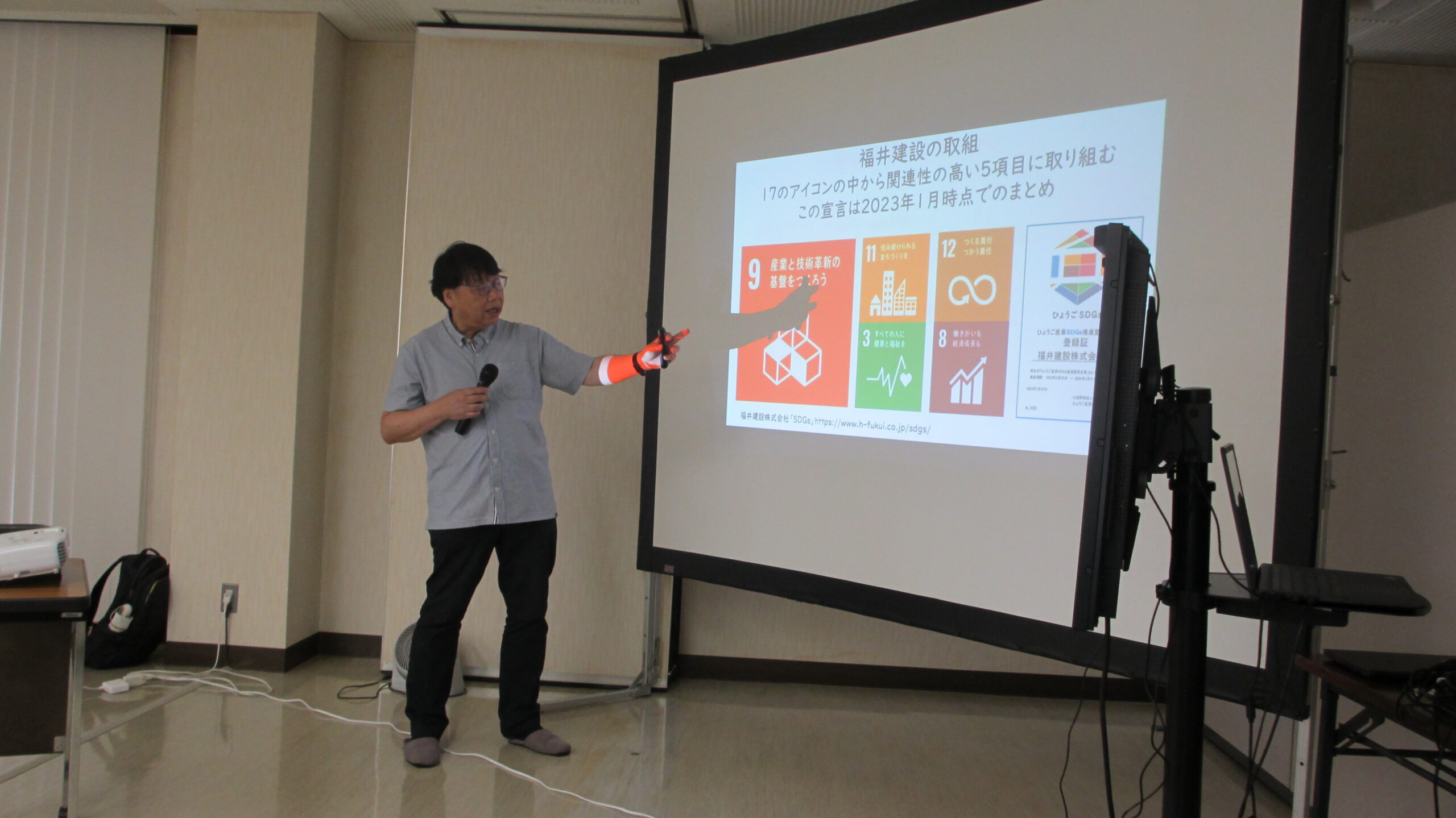 2023年10月10日に第9回目となるSDGs勉強会を兵庫県立大学 畑教授にお越しいただき実施しました。 福井建設のSDGsの取組み、課題について畑教授に講義して頂き再確認しました。 福井グループは、脱炭素・健康経営・社会貢献に重点を置き取り組んで参ります。 今後も勉強会の様子を随時、投稿していきますので是非ご覧ください。
