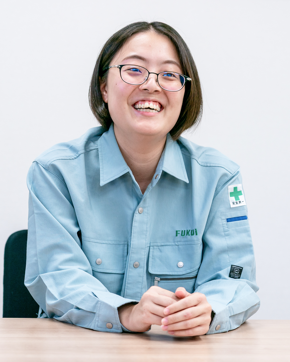 - 現場で働くのは男性の多い職場でしんどいと思われがちですが、近年の法改正により残業をしない方針が徹底されているので、女性でも働きやすい環境だと思います。仕事でのコミュニケーションが取れる方であれば誰でも働ける職場だと思いますので、少しでも興味を持ったならぜひ当社へきてみてください。