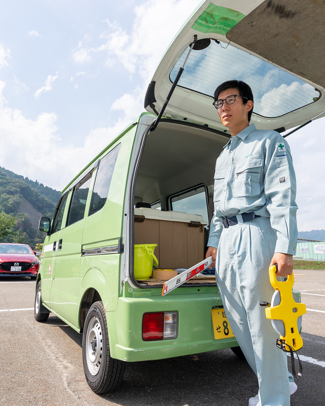 - 施工管理として、図面作成・写真撮影・資材の発注・職人さんへの指示など、現場の調整役として管理全般を担当しています。神戸の事務所に所属していますが、現場での作業が業務の中心となります。