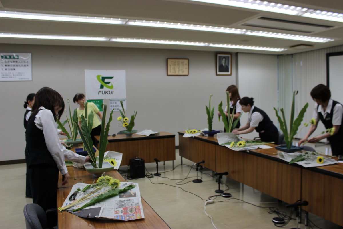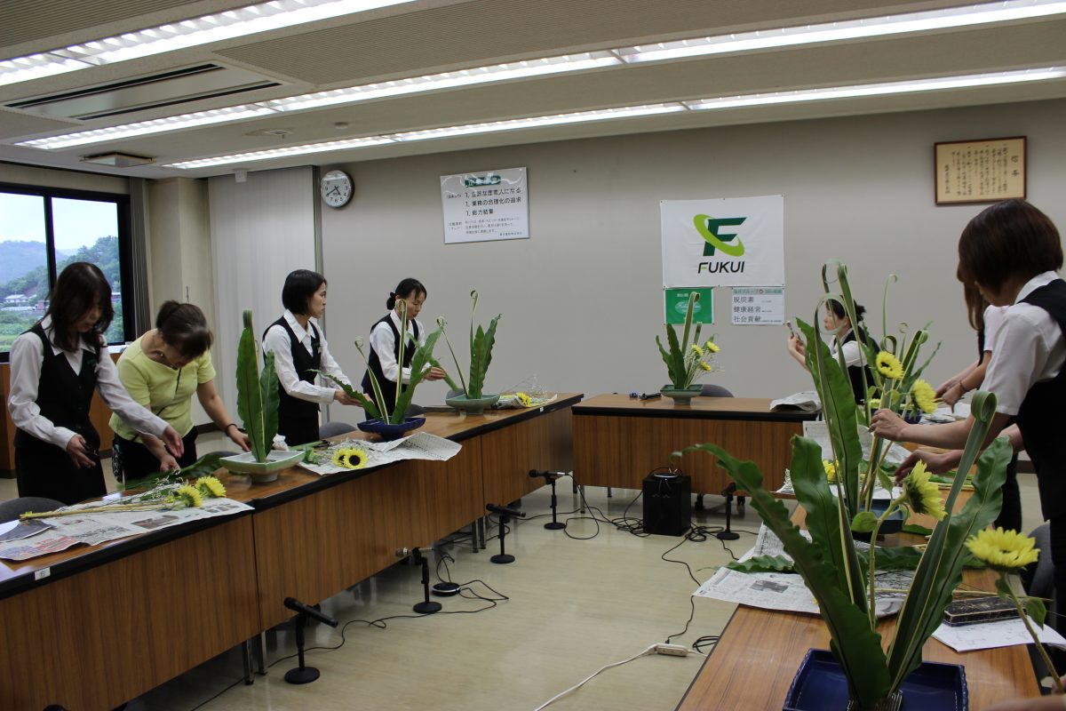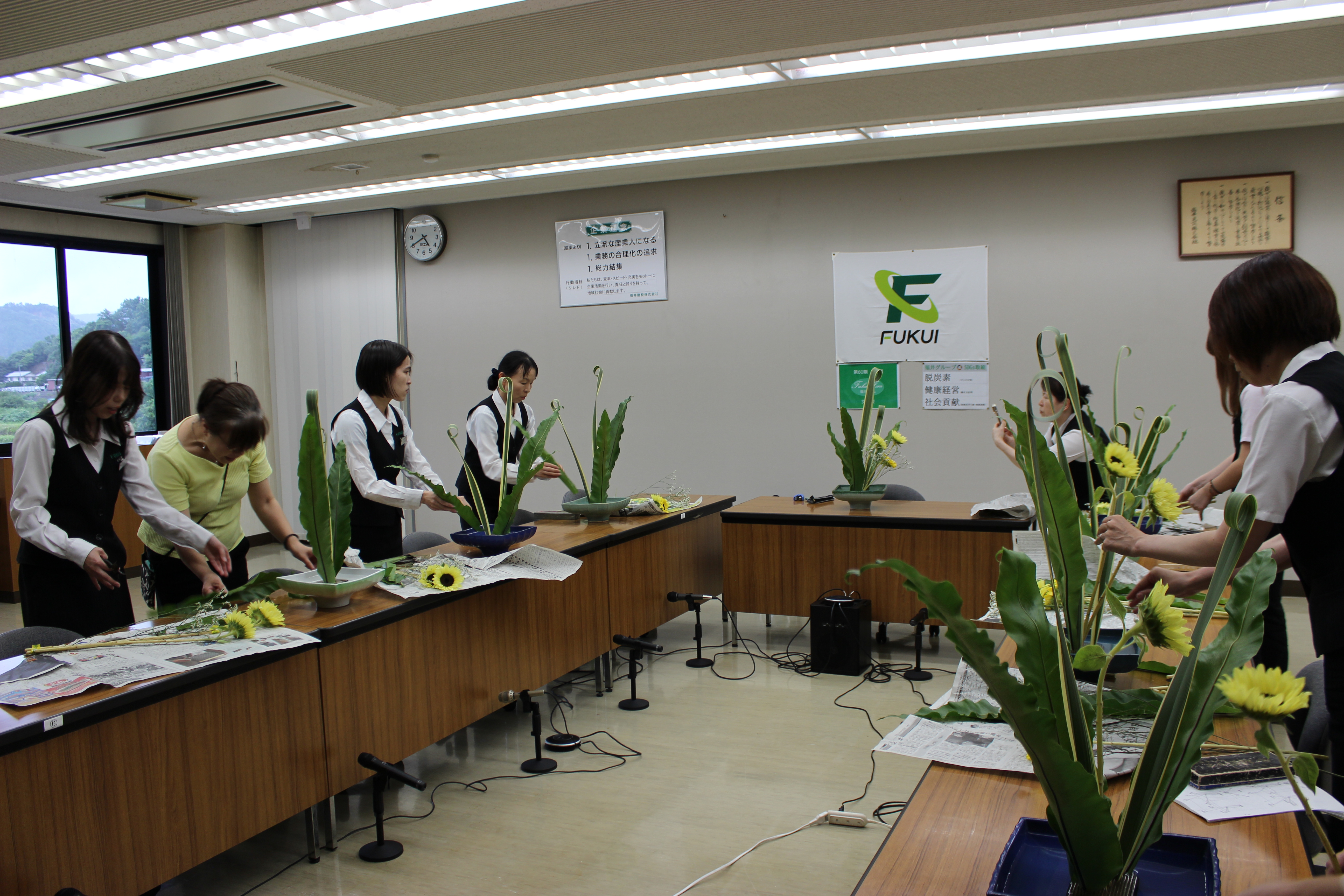 お花の先生をお招きし、社員一同、それぞれの感性で真剣におけいこに励みました。